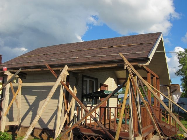 • Устройство и укладка мягкой кровли. Проводится подготовка основания стропил каркаса и обрешетки, теплоизоляционные мероприятия для утепления, укладка материала кровли;